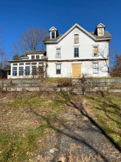 In fall 2023 the porch was too dangerous to keep standing and demolition started immediately. We still saved everything salvageable for the future restored porch, in this case multiple of the decorative beams were able to be kept and stored for later.